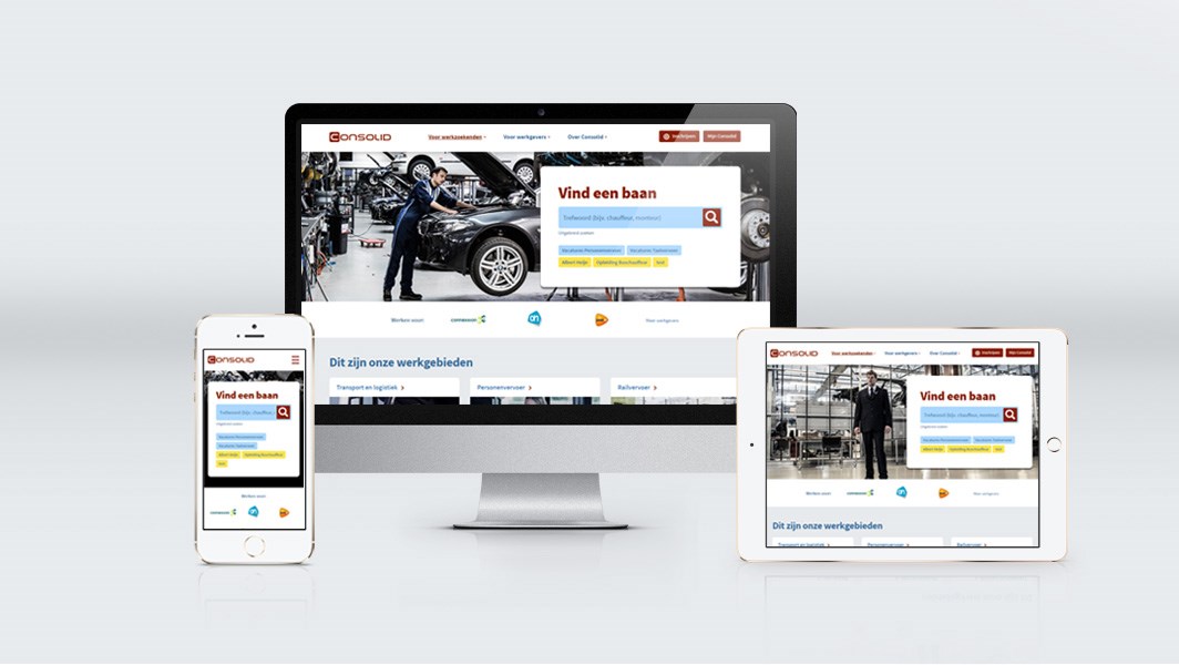 We ruimden vele losse themapagina’s en campagnesites op en maakten één sterke website. Duidelijker voor de bezoeker, want alle vacatures staan nu centraal op één plaats met een eenduidige afzender. Maar ook nuttig voor Consolid zelf: de hele funnel is goed onder controle en bovendien kan men gemakkelijker het (online) merk versterken.