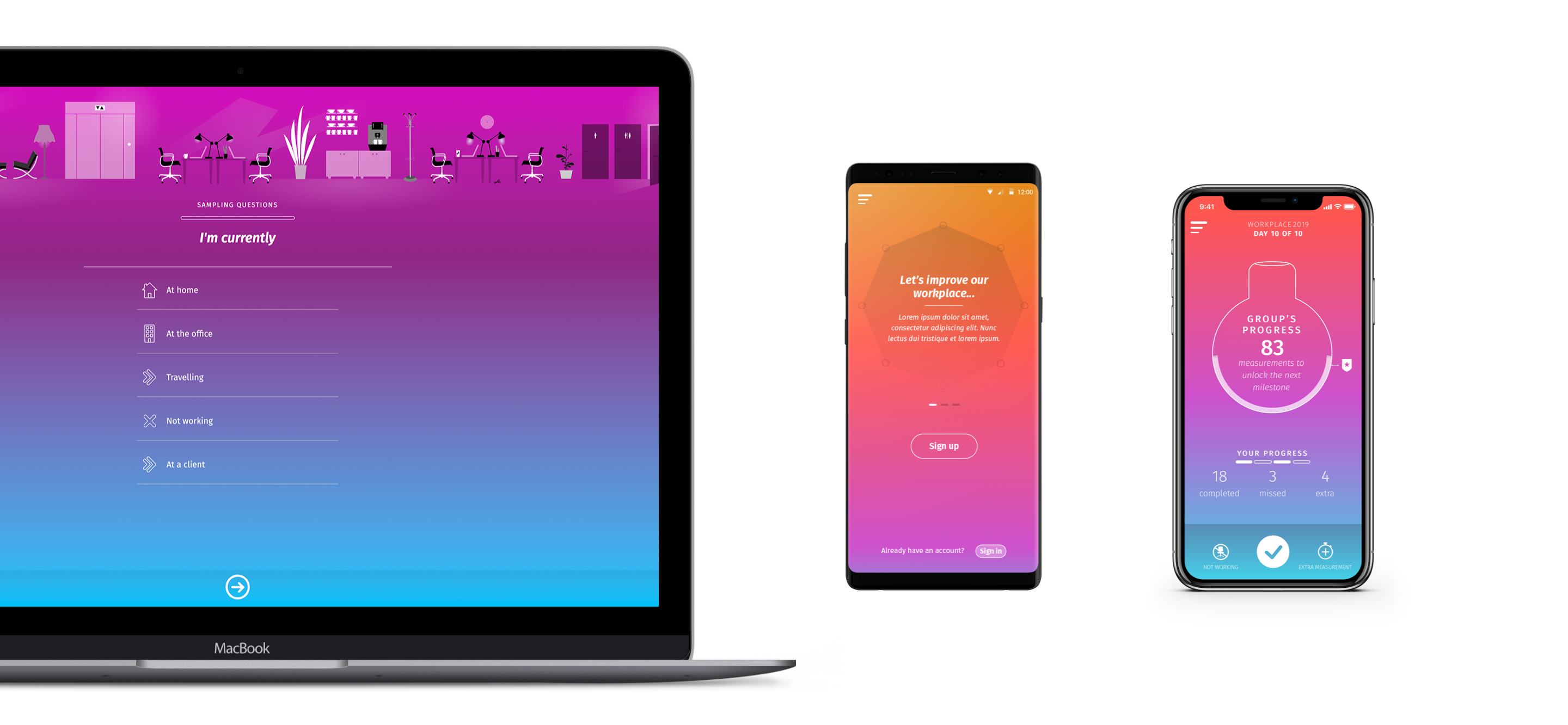 Onderzoeksbureau Measuremen onderzoekt hoe je werkomgevingen slim verbetert. Dankzij hun inzichten kunnen bedrijven hun werkplek beter inrichten. Zo verlagen ze kosten en presteert het team beter. Dat onderzoek gebeurt digitaal. Met de app Habital vragen ze werknemers naar hun ervaringen in hun werkomgeving, op meerdere momenten per dag, een paar dagen lang. Experience sampling, heet deze methode. Zo ontstaat een onderbouwd beeld van wat werknemers denken, voelen, zien en doen. En dat is wat de werkgever nodig heeft om de juiste verbeteringen door te voeren. Wij ontwikkelden de app voor iOS, Android en desktop.